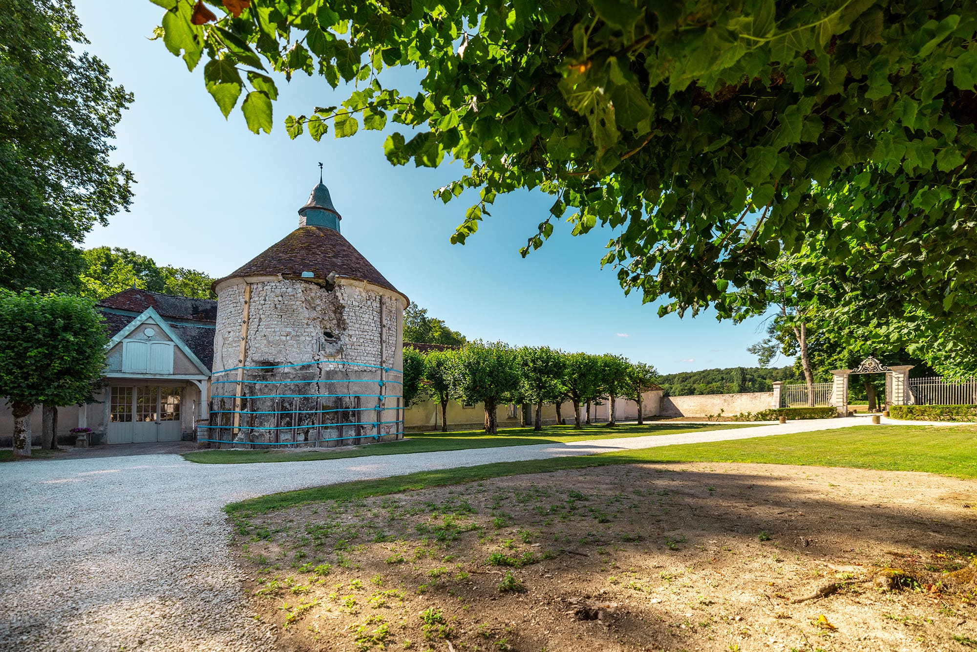 Le pigeonnier, daté du XVIᵉ siècle, constitue la plus ancienne structure conservée du domaine. Il est composé de 1 150 boulins en osier recouverts d’un mortier de chaux. Sous l’Ancien Régime, le nombre de boulins était proportionnel à la superficie des terres exploitées, faisant du colombier un symbole fort de puissance seigneuriale.