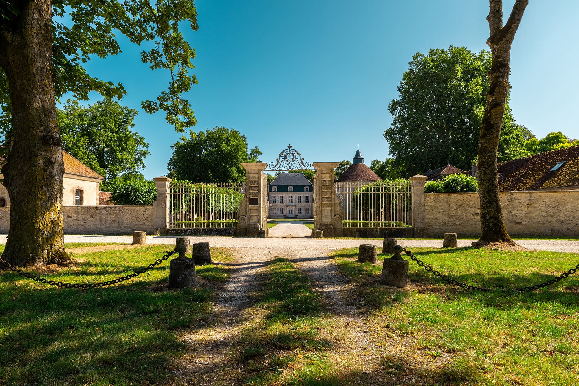 En 1387, la demeure est mentionnée sous le nom d’« Hostel de la Court ». Elle appartient alors à Jean de Gray, vicomte de Bar-sur-Seine. En 1427, le domaine passe à Regnier Pot, puis, en 1459, son petit-fils Philippe Pot, chambellan du duc de Bourgogne, le cède à Claude de Dinteville, seigneur de Polisy.
